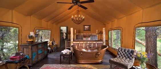 Paws Up puts the glam in glamping. In one of Montana's most beautiful settings, Paws Up delivers every possible camping experience you could want: from big timber style homes to straight up pup-tent campgrounds. However, all are delivered to a standard of luxury even a French monarch would thrill to.
