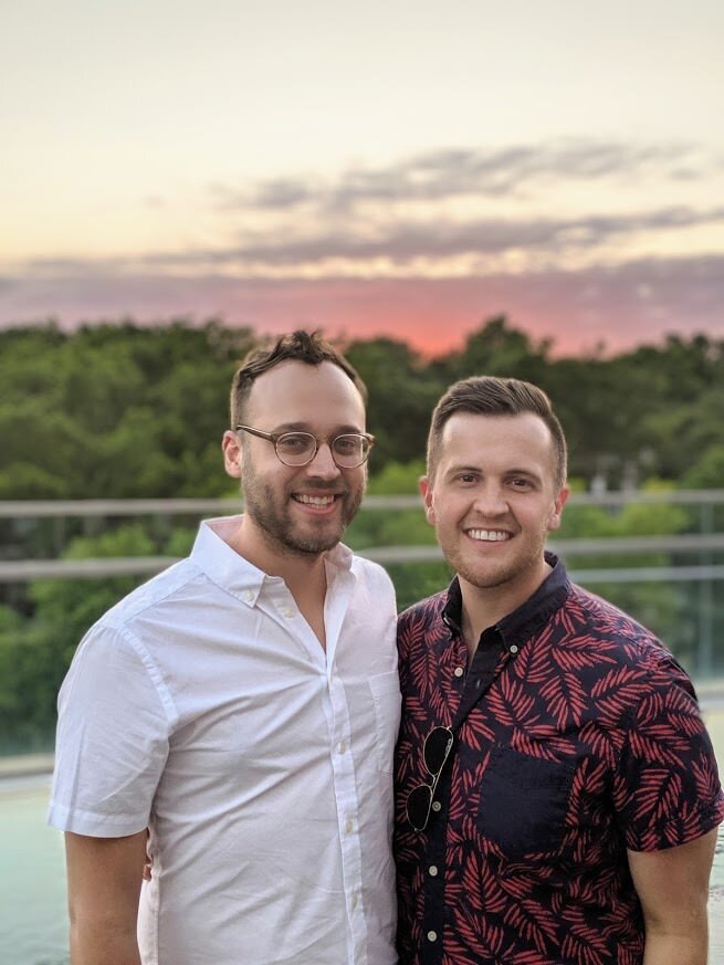Flashback to Denver in 2018. Josh was attending a conference with friends, and Ben was visiting from Kansas City to attend the same conference. The two met amongst mutual friends just long enough for a quick introduction and hello. “I was smitten and asked if Ben was single, but alas, he was not. Months later, Ben was single again and visiting Denver once more. Tinder helped us reconnect and we both swiped right! It was fate for two reasons: Ben never swiped right on people he knew (there's probably a story there somewhere). And second, I had been free from all social media for 6 months but randomly had the urge to date again and download Tinder. Ben was the first profile that popped up.”