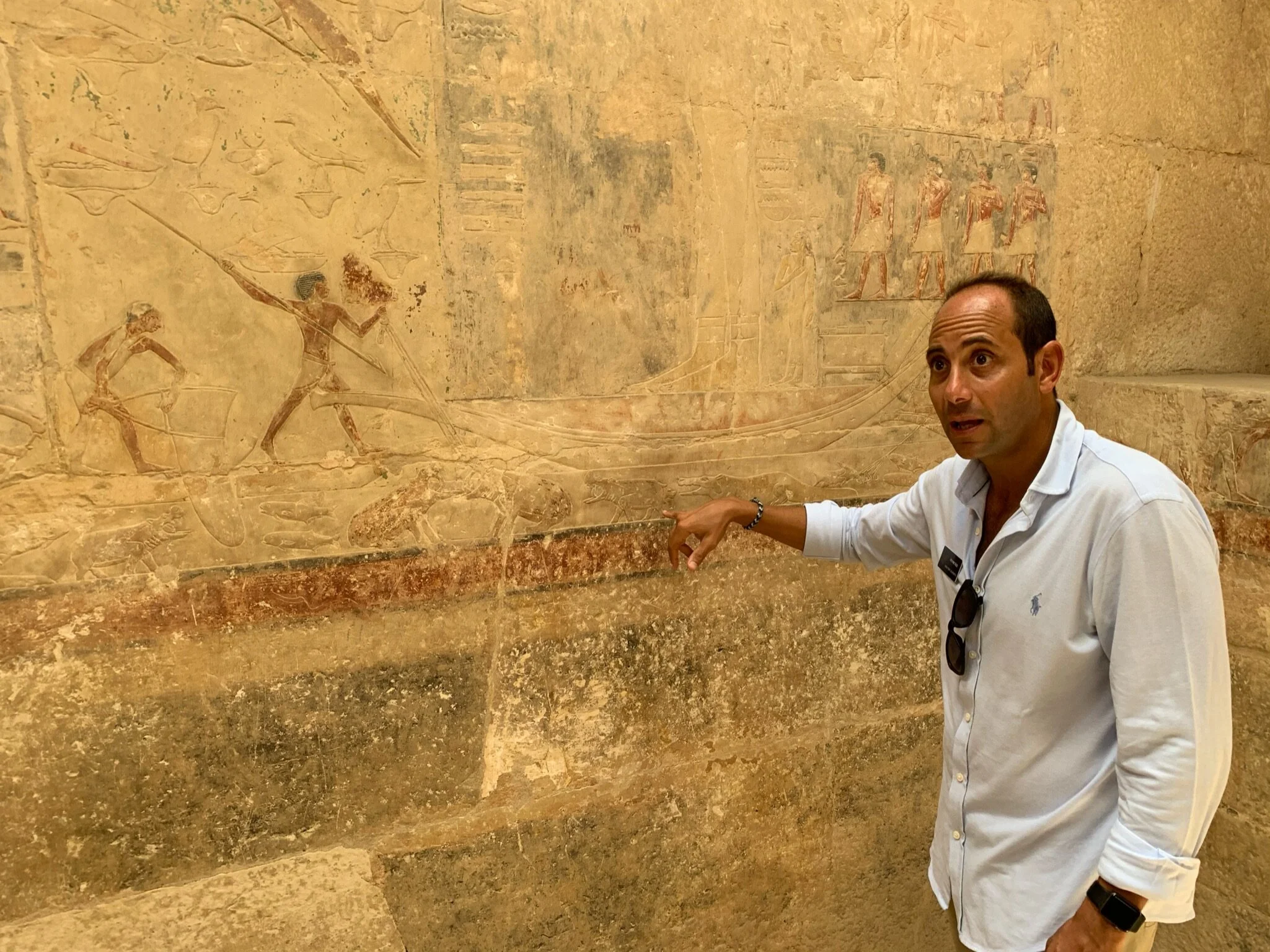 On our third day we decided to go a bit further afield. While Giza provides an unabashed spectacle of grandeur and showmanship of Egyptian pyramids, the slightly less popular pyramids in Dahshur and Sakkara offer a distinctive perspective on a civilization shrouded in mystery and speculation for millennia. Dahshur and Sakkara are a 45-minute drive south of Cairo, through small towns and villages still practicing farming and weaving techniques that have been passed down through generations. In addition to the oldest building complex known in history, and numerous active digs are still revealing newly discovered burial sites, tombs and monuments today. This UNESCO World Heritage Site delivers unparalleled access to tombs where hieroglyphics preserved with their original pigment tell stories of life surprisingly similar to today. You may feel like an archeologist as you enter these breathtaking sites and appreciate how these powerful dynasties ruled the land. Don’t miss the tomb of Khnumhotep and Niankhkhnum, originally named the tomb of the “twin brothers.” This unusual tomb is where the Pharaoh’s manicurist and hairdresser were believed to be buried together, and the only tomb shared by two men, making these two quite possibly the first gay couple. Further evidence is on the walls on this tomb where the two are depicted in a nose-to-nose embrace which seems to illustrate a love that has stood the test of time.