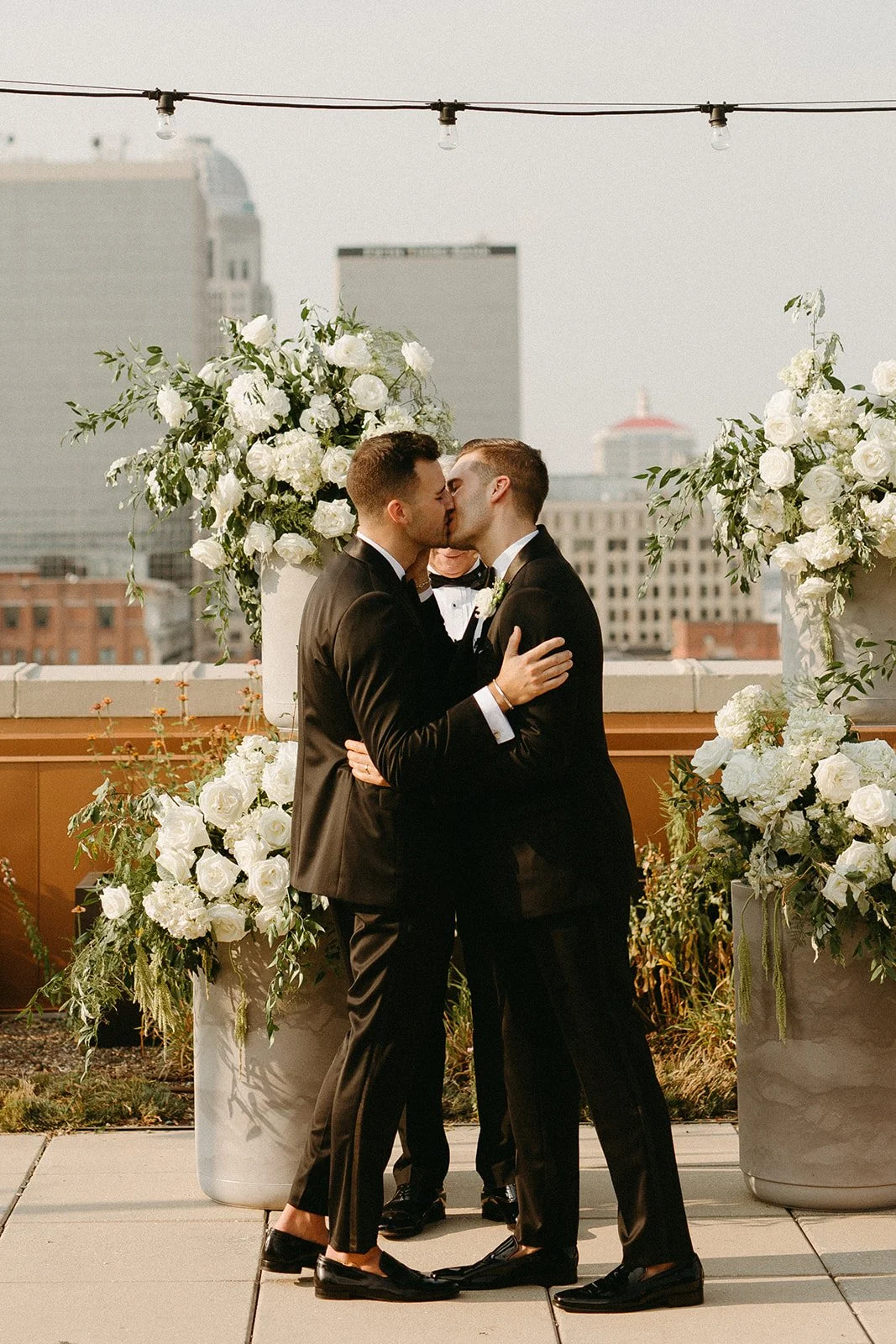 The two opted to get married in Louisville, KY, August of this year, in the city they had first lived together as a couple. And they opted for a quintessential Louisville wedding, which meant getting married at the historic Brown Hotel. Matthew described: “The venue itself is so beautiful, and we wanted our wedding to have that same elegant, timeless vibe. Our ceremony took place on the rooftop terrace, and our reception was in their Crystal Ballroom.” Both did say, however, that not living in Louisville while planning made for a lot of virtual meetings and a new-found appreciation for Google docs!