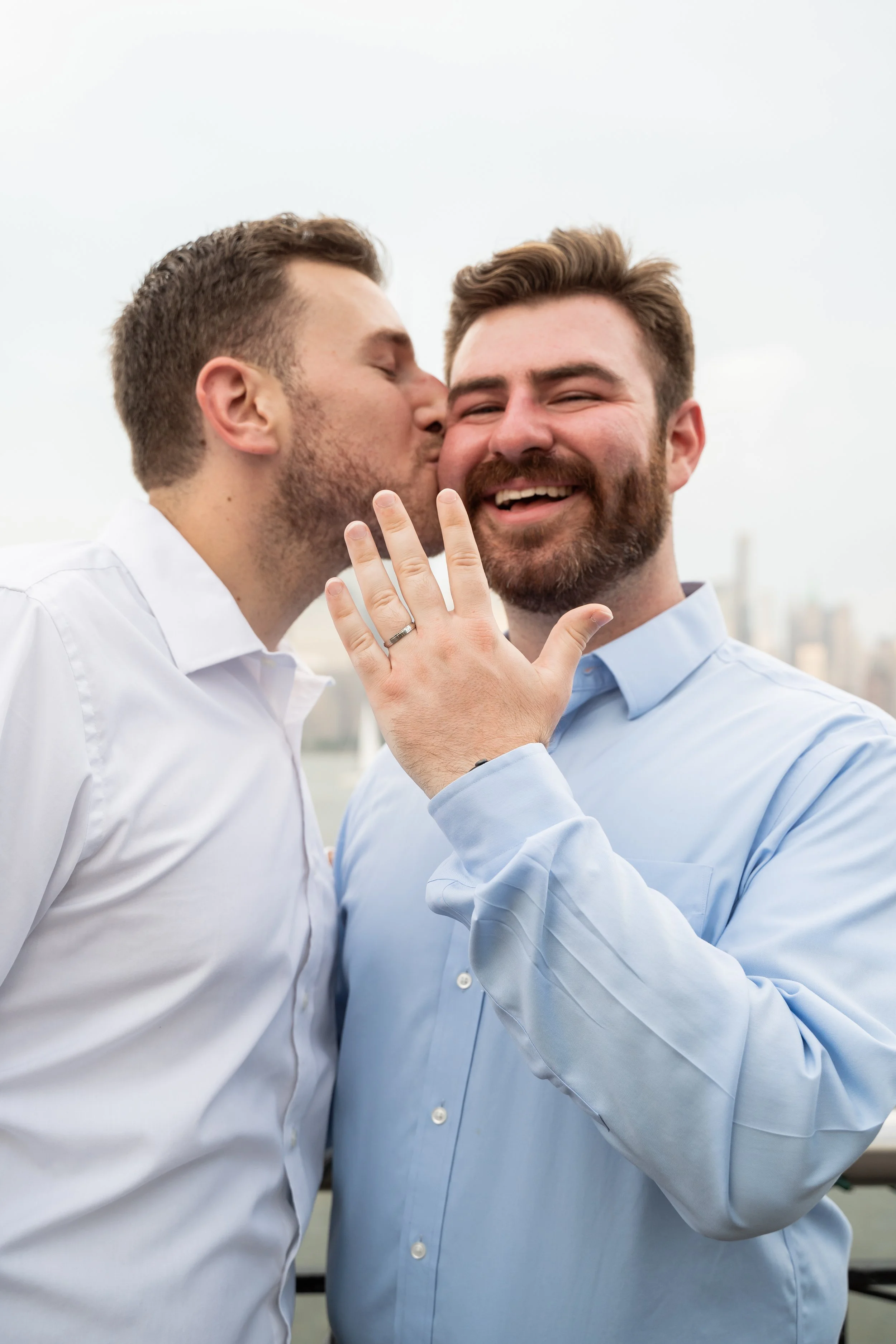 “The weekend before the proposal, Brandon and I went ring shopping in NYC. The purpose of the day out was two-fold, first - I needed his ring size, and second - I wanted to throw him off. Oddly enough the ring that we went with wasn't in stock in his size, which led him to believe the engagement wouldn't be anytime soon; however, what he didn't know was that the jeweler would give me a ring in a slightly larger size to use for the proposal as his ring was shipped in.